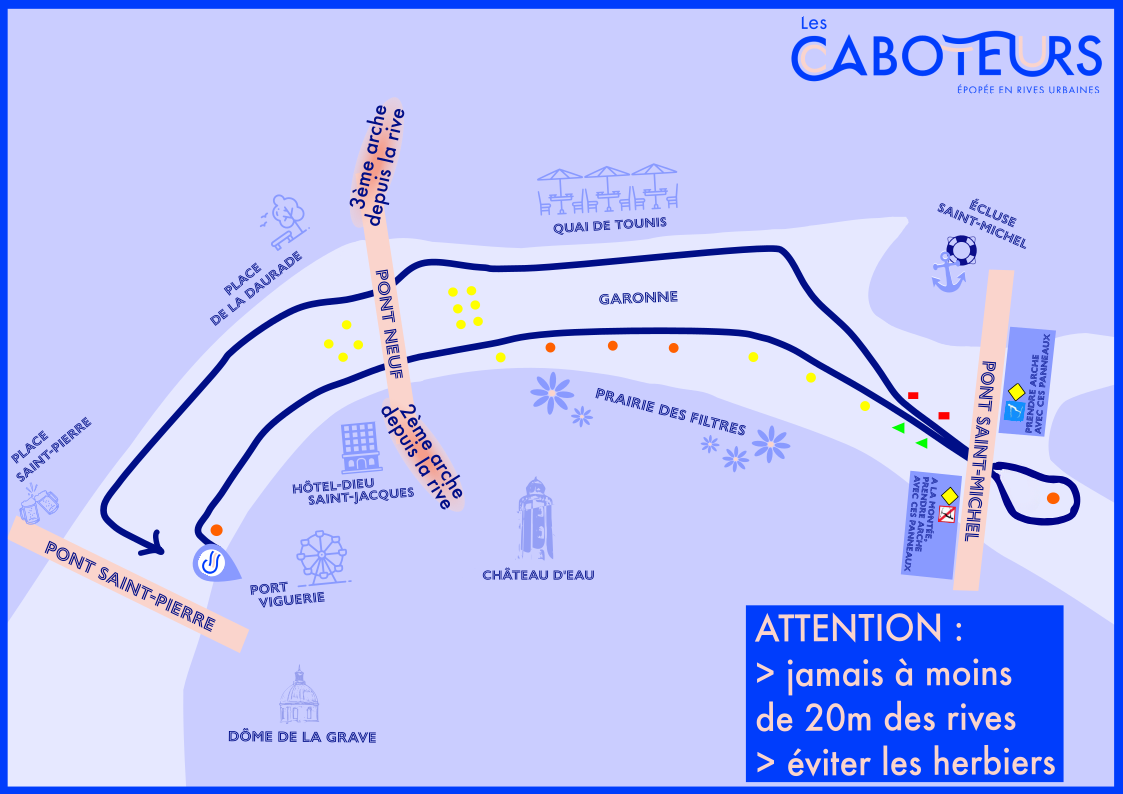 Au départ du Port Viguerie (Saint Cyprien), profitez du point de vue unique depuis la Garonne à travers 2 parcours différents. Les parcours possibles à bord de nos bateaux électriques sans permis :